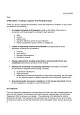 Gwybodaeth am y cyllid ar gyfer prosiectau plannu coed yn Uganda.