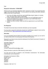 Gwybodaeth ynghylch defnyddio awyrennau milwrol ym Maes Awyr Caerdydd.