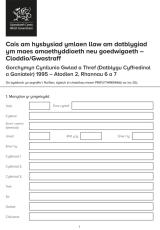 Cais am hysbysiad ymlaen llaw am datblygiad ym maes amaethyddiaeth neu goedwigaeth: cloddio/gwastraff , math o ffeil: PDF, maint ffeil: 177 KB
