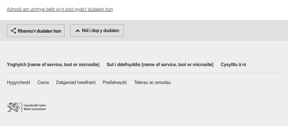 - ‘Ynghylch [gwasanaeth, offeryn neu ficrowefan LLYW.CYMRU]’ (dewisol)