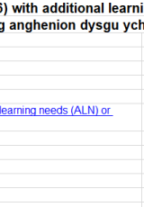 Disgyblion ag ADY neu AAA a ddysgir Cymraeg fel iaith gyntaf, gan yr ysgol, 2022 (Prifysgol Aberystwyth) , Saesneg yn unig, math o ffeil: ODS, maint ffeil: 87 KB