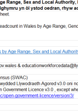 Nifer o athrawon (cyfrif pen) yng Nghymru yn ôl ystod oedran, rhyw ac awdurdod lleol, Tachwedd 2023 , Saesneg yn unig, math o ffeil: ODS, maint ffeil: 10 KB