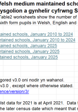 Nifer y disgyblion Chweched Dosbarth mewn ysgolion a gynhelir cyfrwng Saesneg a Chymraeg, 2010 i 2025 , Saesneg yn unig, math o ffeil: ODS, maint ffeil: 106 KB