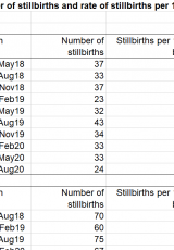 Marw-enedigaethau a chyfradd y marw-enedigaethau am bob 1,000 o enedigaethau yng Nghymru, Mawrth 2018 a mis Awst 2020 , Saesneg yn unig, math o ffeil: ODS, maint ffeil: 16 KB