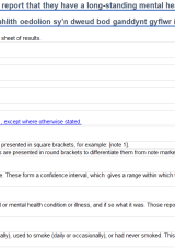 Nifer yr achosion o ysmygu a gofnodwyd ymhlith oedolion sy'n dweud bod ganddynt gyflwr iechyd meddwl hirdymor, 2016-17 i 2019-20 , Saesneg yn unig, math o ffeil: ODS, maint ffeil: 7 KB