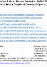 Ystadegau'r Farchnad Lafur y Sector Diwydiant Creadigol Cymru, 2016 i 2021 , Saesneg yn unig, math o ffeil: ODS, maint ffeil: 19 KB