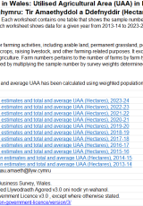 Arolwg Busnes Fferm yng Nghymru: Tir Amaethyddol a Ddefnyddir (Hectarau), 2013-14 i 2023-24 , Saesneg yn unig, math o ffeil: XLSX, maint ffeil: 40 KB