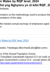 Enillion blynyddol canolrifol yng Nghymru yn ôl lefel RQF, 2024 , Saesneg yn unig, math o ffeil: ODS, maint ffeil: 7 KB