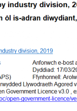 Hunangyflogaeth Cymru yn ôl is-adran diwydiant, 2019 , Saesneg yn unig, math o ffeil: ODS, maint ffeil: 9 KB