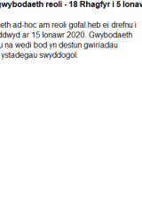 Ymateb a anfonwyd ar 15 Ionawr 2020.