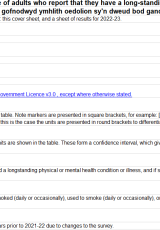 Nifer yr achosion o ysmygu a gofnodwyd ymhlith oedolion sy'n dweud bod ganddynt gyflwr iechyd meddwl hirdymor, 2022 i 2023 , Saesneg yn unig, math o ffeil: ODS, maint ffeil: 6 KB