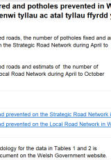 - Gosod wyneb newydd ar ffyrdd, llenwi tyllau ac atal tyllau ffyrdd yng Nghymru, Ebrill i Hydref 2025
