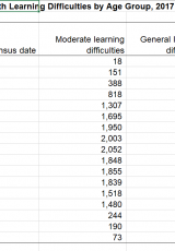 Disgyblion ag anawsterau dysgu a darpariaethau anghenion addysgol arbennig lluosog, 2017 i 2019 , Saesneg yn unig, math o ffeil: ODS, maint ffeil: 15 KB