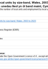 - Cyflogaeth mewn unedau lleol yn ôl band maint, Cymru, 2003 i 2023