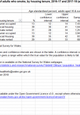 Oedolion sy'n ysmygu, yn ôl deiliadaeth tai, Ebrill 2016 to Mawrth 2018 , Saesneg yn unig, math o ffeil: ODS, maint ffeil: 11 KB