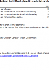 - Plant sy'n derbyn gofal ar 31 Mawrth a leolwyd mewn cartrefi gofal preswyl, 2014 i 2018