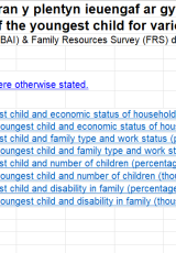 Poblogaeth mewn tlodi incwm cymharol, yn ôl oedran y plentyn ieuengaf ar gyfer gwahanol dadansoddiadau, FYE 2019 i FYE 2023 , Saesneg yn unig, math o ffeil: ODS, maint ffeil: 11 KB