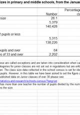 Maint dosbarthiadau iau mewn ysgolion cynradd a chanol, Ionawr 2018 , Saesneg yn unig, math o ffeil: ODS, maint ffeil: 7 KB