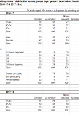 Statws ysmygu oedolion: Dosbarthiad ar draws grwpiau (oedran, rhywedd, amddifadedd, deiliadaeth tai), Ebrill 2016 i Mawrth 2018 , Saesneg yn unig, math o ffeil: ODS, maint ffeil: 14 KB