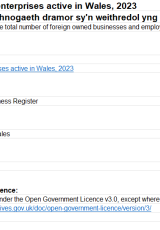 - Mentrau â pherchnogaeth dramor sy'n weithredol yng Nghymru, 2023