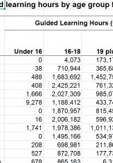 Llwyth myfyrwyr ac oriau dysgu dan arweiniad mewn sefydliadau addysg bellach rhwng 16 a 17 a 18 oed a throsodd, Awst 2019 i Orffennaf 2020 , Saesneg yn unig, math o ffeil: ODS, maint ffeil: 17 KB