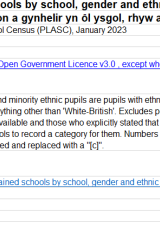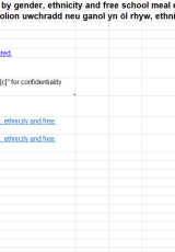 - Disgyblion ym mlynyddoedd 12 i 14 (chweched dosbarth) mewn ysgolion uwchradd neu ganol yn ôl rhyw, ethnigrwydd a chymhwysedd i gael prydau ysgol am ddim, 2022 a 2023