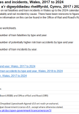 Nifer y marwolaethau a’r digwyddiadau rheilffyrdd, Cymru, 2017 i 2024 , Saesneg yn unig, math o ffeil: ODS, maint ffeil: 8 KB
