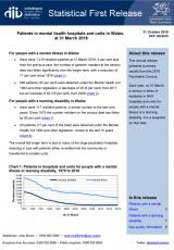 Cleifion mewn ysbytai ac unedau iechyd meddwl, ar 31 Mawrth 2018 , Saesneg yn unig, math o ffeil: PDF, maint ffeil: 541 KB