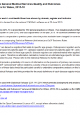 Crynodeb data ar gyfer Cymru a byrddau iechyd lleol, Ebrill 2015 i Mawrth 2016 , Saesneg yn unig, math o ffeil: ODS, maint ffeil: 218 KB