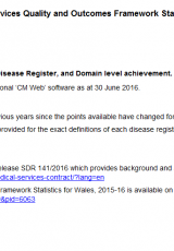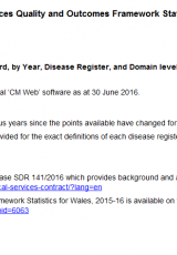 Canlyniadau ar gyfer Cymru ac ar gyfer pob bwrdd iechyd lleol, fesul blwyddyn, cofrestr clefydau, a chyflawniad ar lefel parth, Ebrill 2015 i Mawrth 2016 , Saesneg yn unig, math o ffeil: XLSX, maint ffeil: 480 KB