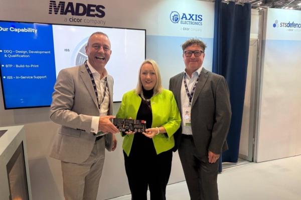 Cyfarfu Rebecca Evans, Ysgrifennydd y Cabinet dros yr Economi, Ynni a Chynllunio, â Cicor yn nigwyddiad DSEI UK a gynhaliwyd yn Llundain, ym mis Medi.