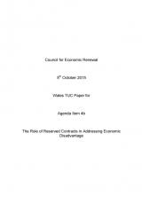 Cyfarfod Cyngor Adnewyddu'r Economi: the role of reserved contracts in addressing economic disadvantage Wales TUC , math o ffeil: PDF, maint ffeil: 1 MB
