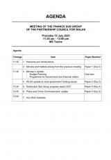 Cofnodion cyfarfod yr Is-grŵp Cyllid a gynhaliwyd ar 15 Gorffennaf 2021.