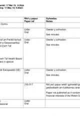 Agenda a chofnodion cyfarfod y Bwrdd ar 17 Mai am 9.30yb, Caerdydd.