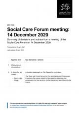Crynodeb o benderfyniadau a chamau gweithredu cyfarfod o'r Fforwm Gofal Cymdeithasol ar 14 Rhagfyr 2020.