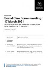 Crynodeb o benderfyniadau a chamau gweithredu cyfarfod o'r Fforwm Gofal Cymdeithasol ar 17 Mawrth 2021.
