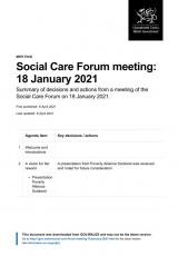 Crynodeb o benderfyniadau a chamau gweithredu cyfarfod o'r Fforwm Gofal Cymdeithasol ar 18 Ionawr 2021.
