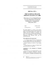 Cyfarwyddiadau i Fyrddau Iechyd Lleol ar Gyfarwyddydau Datganiad o Hawliau Ariannol (Diwygio) 2019 (2019 Rhif 5) , Saesneg yn unig, math o ffeil: PDF, maint ffeil: 159 KB