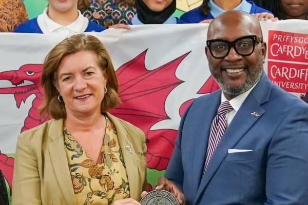 Fel rhan o'r ymweliad, cyflwynodd y Prif Weinidog a'r gwesteion Americanaidd Sêl Dinas Birmingham i ddisgyblion Ysgol Gynradd yr Eglwys yng Nghymru, St. Mary the Virgin, yn Butetown, Caerdydd heddiw. Roedd y sêl yn rhodd gan Faer Birmingham.