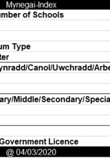Enwau, cyfeiriadau, a rhifau ffôn ysgolion ac unedau cyfeirio disgyblion. Mae ysgolion yn cynnwys ysgolion meithrin, cynradd, canol, uwchradd, arbennig ac annibynnol.