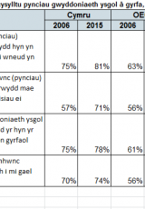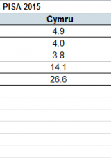 - 477 oedd y sgôr cyfartalog yng Nghymru o ran darllen ar gyfer PISA yn 2015. Mae’r sgôr hwn wedi aros yn sefydlog ers 2006 (481).