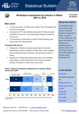 Cyflogaeth gweithle fesul diwydiant, 2001 i 2018 , Saesneg yn unig, math o ffeil: PDF, maint ffeil: 515 KB
