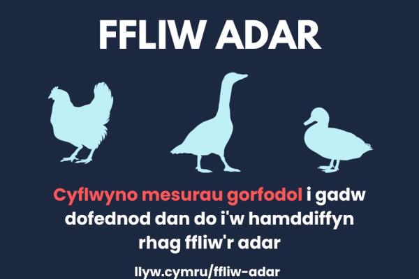 Mae ffliw adar yn destun pryder difrifol, nid yn unig o ran iechyd a lles anifeiliaid, ond hefyd o safbwynt cynhyrchu bwyd ac iechyd pobl.