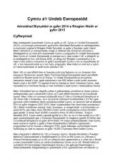 Cymru a'r UE: adroddiad blynyddol ar gyfer 2014 a rhaglen waith ar gyfer 2015 , Saesneg yn unig, math o ffeil: PDF, maint ffeil: 370 KB