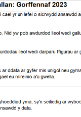 Ym mis Gorffennaf 2023 ehangwyd y data a gyhoeddwyd yn nhablau data 1 a 2 (a gyhoeddir gyda’r adroddiad hwn) ar lefel Cymru ar gyfer y cyfnod o Ebrill 2023: