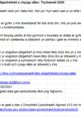 Os oes angen fersiwn fwy hygyrch o’r ddogfen hon arnoch, e-bostiwch digidol@llyw.cymru. Dywedwch wrthym pa fformat sydd ei angen. Os ydych yn defnyddio technoleg gynorthwyol, nodwch fanylion.