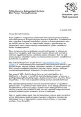 Llythyr at bennaeth cynllunio am bolisi cynllunio sy'n effeithio ar gaeau chwarae a chyfleusterau chwaraeon.