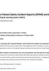 Sefydliad llyfr gwaith adroddiadau ar ddigwyddiadau diogelwch cleifion (OPSIR): Ebrill i Medi 2018 , Saesneg yn unig, math o ffeil: XLSX, maint ffeil: 96 KB