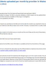 Defnyddir y set data hon i fesur lefelau adrodd gan sefydliadau’r GIG gan gynnwys pa mor rheolaidd a phrydlon y bydd yn cael ei adrodd. Nid yw’n addas i gymharu rhwng byrddau iechyd neu i wneud newidiadau dros amser oherwydd y gwahaniaeth rhwng pa bryd y digwyddodd rhywbeth a pha bryd y cafodd ei adrodd.