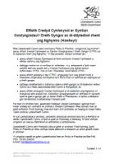 Os oes angen fersiwn fwy hygyrch o’r ddogfen hon arnoch, e-bostiwch digidol@llyw.cymru. Dywedwch wrthym pa fformat sydd ei angen. Os ydych yn defnyddio technoleg gynorthwyol, nodwch fanylion.
